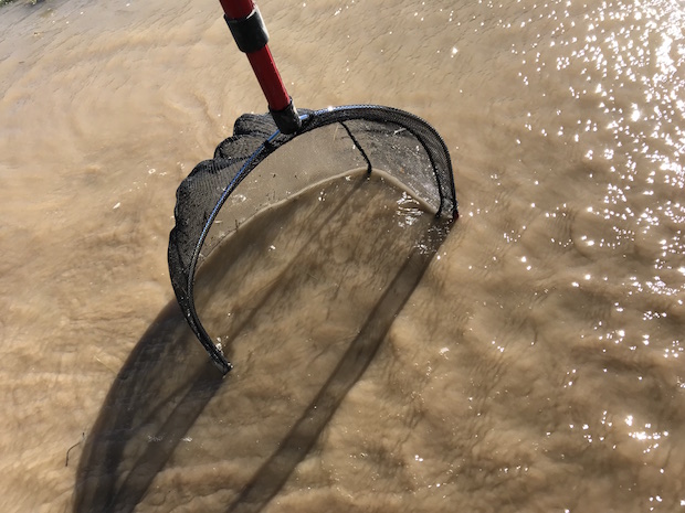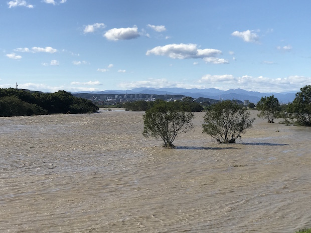 こんな魚捕りが楽しめるのは台風一過から2、3日後まで。思いのほか早い減水と、ボーナスステージに発奮するサギやカラスとの競争になります。