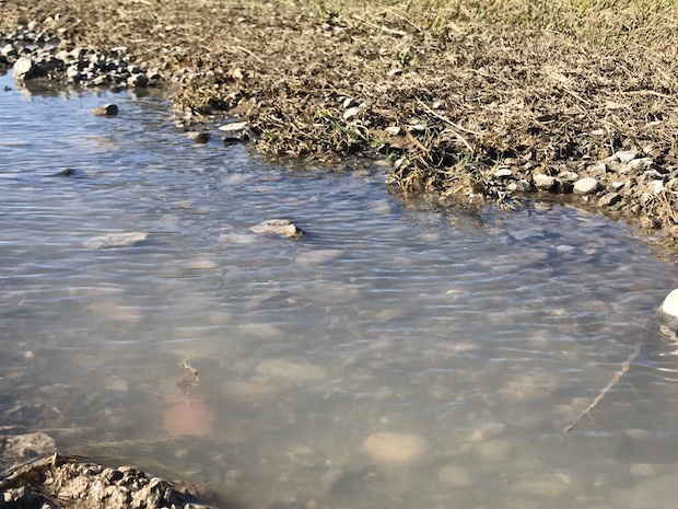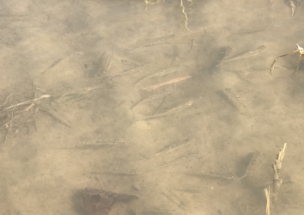 ちょいと目をこらしてみると、薄にごりの水のなかには小魚が!