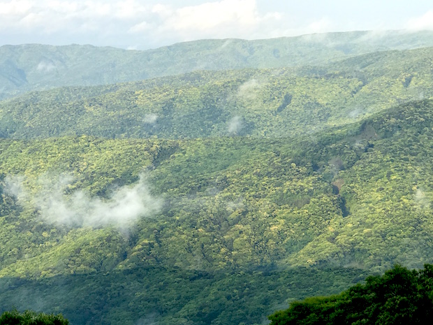 台風一過の朝は空気が透明だ。埃が洗い流されるのか、はたまた清浄な空気に入れ替わるためか、普段は見えない遠くの山並みまで見渡せる。新鮮な木の葉があちこちに貼り付き、どこから流れてきたのか、家の前をカメが歩いていたりする。