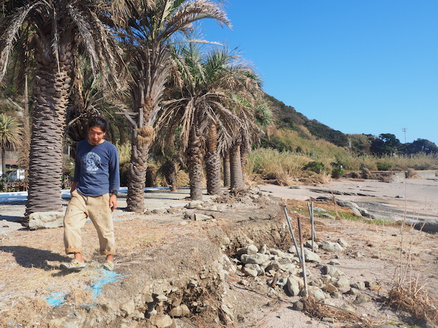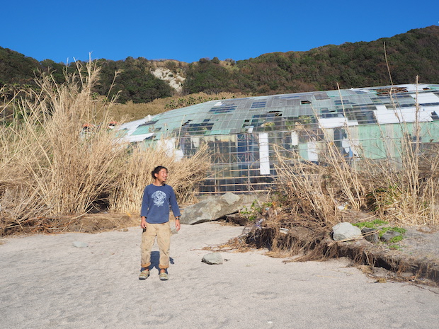 「自宅にいて、風はいつもよりちょっと強いかなという程度だったんですね。台風が過ぎて、ここに来て、びっくりを超えて文字通り立ち尽くしてしまいました。プールサイドのあたりは『少しやられたな、直さなきゃいけないな』っていう程度だったんですけど、プライベートサイトは、まったく無くなってしまったと言っていいほどでした。砂ごと波にさらわれていって。仮説トイレやキャンプ場の水場は50メートル以上も流されてしまったし、ジャングル温室の屋根は飛んでしまっています。経営が順風漫歩なわけでもないので、このキャンプ場はもう営業できなくなってしまうかも、という考えも脳裏をよぎりました。近くに住んでいるおじいちゃんやおばあちゃんも、南房総で台風によってこれほどの被害がもたらされたのは初めてだって言っていました」