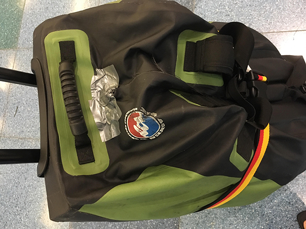 GRIVELのボストンバッグが支給される。この中に食料、救急用品、バッテリー、着替えなどを詰め込む。ファスナーがちぎれそうだった。