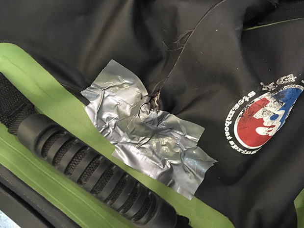レース用に持ってきていたダクトテープで内側からファスナーを止め、無理やり閉めて両サイドを完全封印した。羽田空港で急遽購入したベルトは、ジュネーブに着いたら跡形もなく消えていた。