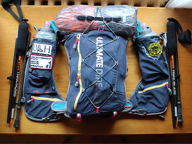 *必携装備…トレイルランニングのレースではしばしば必携装備というルールがある。選手は大会側が指定するウエアやギアを必ず持って走らなければならない。レース前日の受け付け時には装備チェックがあり、これを守らなければ失格どころかスタートすらできない。