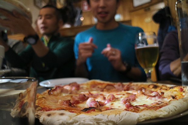 モンブランをはさんでシャモニーの反対側、イタリアのクールマイヨール。前夜に日本人参加者の集まりがあった。トレイルランニングの世界では有名な人もいて、錚々たる面々だった。皆平気な顔をして、ピザ片手に何百キロというレースの話をする。トルデジアンを何度も完走している人もいる。レベルが違いすぎて頭に入ってこなかった。1杯だけ、と決めてビールを飲み干した。