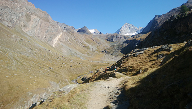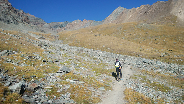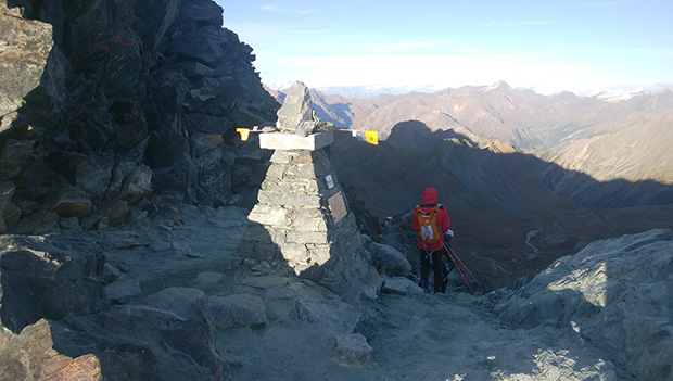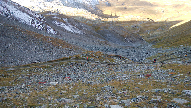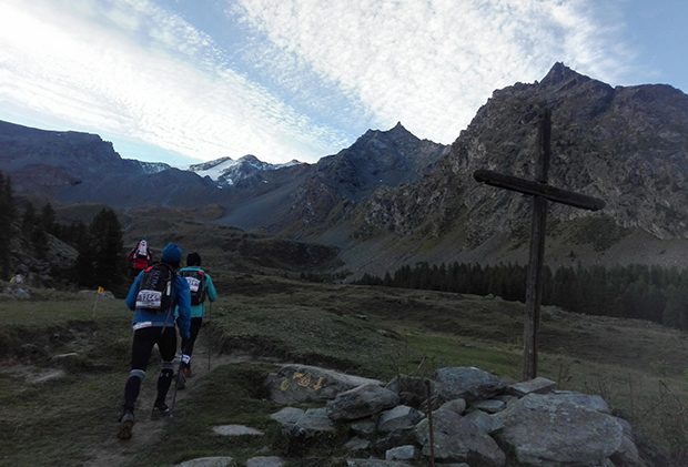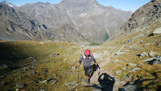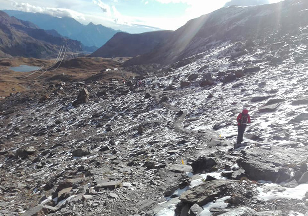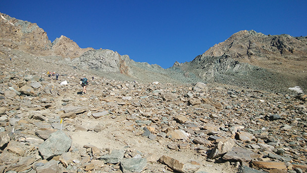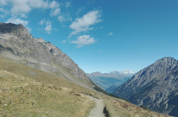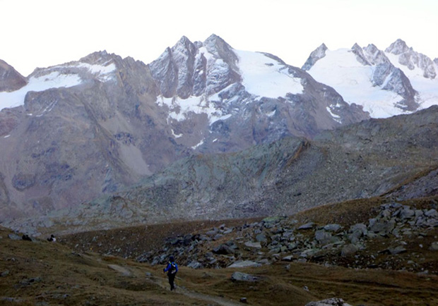 3つのうちの最後のコルは、レース最高地点のcol loson。なんと標高3299m! 高所好きのわたしにとってヨーロッパアルプスの標高の高い場所を走れることもこのレースを選んだ理由の一つでもある。4つの巨人達(モンブラン、グラン・パラディーゾ、モンテローザ、マッターホルン)のうち、グラン・パラディーソ国立公園のエリアを走ることのできる山好き垂涎のコースだ。しかも、明るい時間帯に通ることができる。こんな贅沢なことはない。