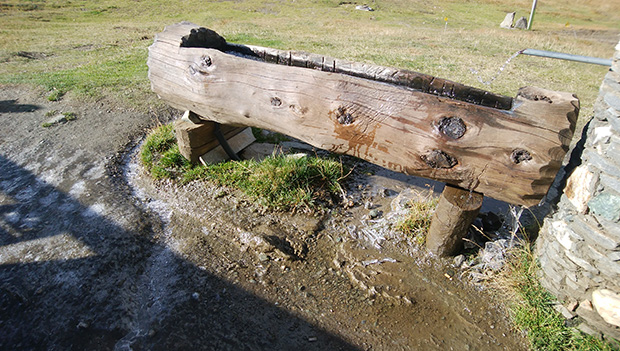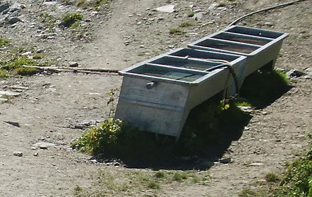 もうひとつ絶対に気を付けるべきことがある。それは沢や川の水、湧き水を飲んではいけないということだ。山の麓や町には、いたるところに湧き水のタンクがあり、キラキラ輝く水が溢れ出ている。ヨーロッパの選手は恵の水といった感じでごくごく飲んでいるが、日本人にはあまりおすすめできない。アルプスの山々では驚くほどの数の牛が放牧されていて(しかも結構標高の高いところまで!)、そこかしこに彼らが放出する巨石のような糞が鎮座している。時に道を塞ぐほどの糞の量は、1日も歩けば踏まずに帰るのは不可能だ。レースではもはやそんなことを気にしている選手などいないので、もうみんな仲良く糞まみれだ。