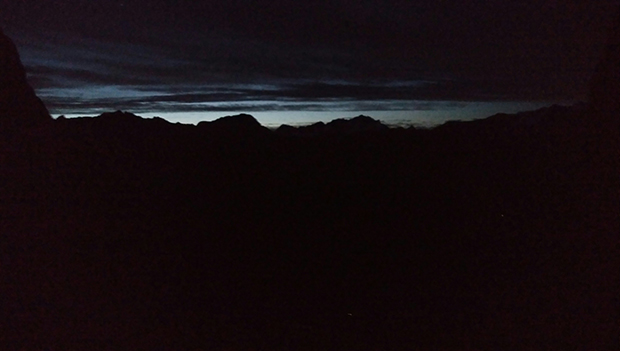 真夜中を5時間くらいかかったように思う。2日目のとんでもない3つの山に比べればかなりなだらかな登りだった。しっかり食事と睡眠を取ったことでエネルギーが身体に染みわたり、すっかり食あたりからも回復した。ちなみにこれ以降、内臓トラブルはなく終始食欲旺盛だった。好き嫌いがないというのは、とてつもない強みかもしれない。