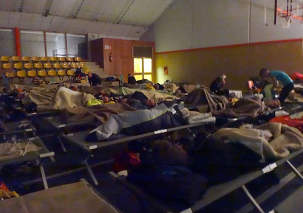 このライフベースでは、寝る人のゼッケン番号と寝る時間と起きる時間、ベッド番号をすべて一覧表に記載して管理されていた。指定のベッド(コット)に案内され、どのくらい寝るかと聞かれる。30分は着替と準備に充てて、1時間半寝ることにした。1つめライフベースで荷物整理に戸惑ったので、先に済ませてから寝る作戦に変更した。胃腸の薬を飲んで目を閉じた瞬間から泥のように眠り、あっという間にスタッフが肩を叩きにきた。起きたつもりでいたのがどうやら二度寝をしていたらしく、もう一度起こされた。なんとも有難いシステムだ。こんなイケメンがそっと起こしてくれるなんて。自宅まで持って帰りたいもんだ。