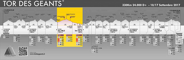 330km、制限時間は150時間、つまりレースは7日間。難関のトレイルランニングレース、Tor des Geants(トルデジアン―巨人達の旅)のスタートを切った。しかし、出発前から続いていたアレルギー性鼻炎、乾燥した空気と舞い上がる砂ぼこりの影響で初日から気管支炎になってしまった! これまで数々のトラブルを経験してきたが、これはさすがに前代未聞! 呼吸が苦しく高山病のような症状でよろめく中で、周りの仲間の背中を追いかけ、なんとか1つめのライフベースへ。60分の睡眠で体力は回復したが、2日目に待ち構えるのは、標高3000m級の山が3つ……。