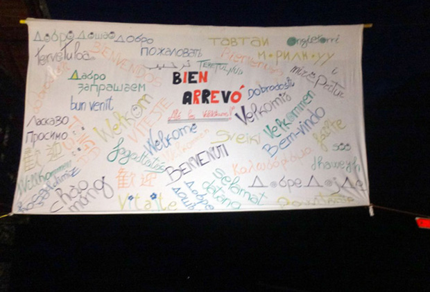 小さなエイドにあったフラッグ。色んな言葉で歓迎と書いてあるみたい。