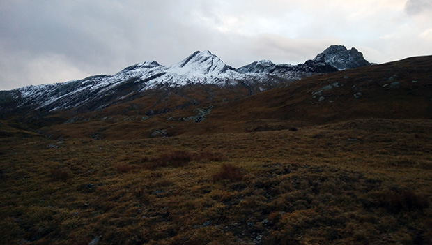 周りの山の景色を眺めながらも、しっかりとした歩みで先をめざす。遥か遠いフィニッシュをめざしているんじゃない、次の旅先をめざしていた。どうやらこのセクションでは、コルの手前に良い小屋があるらしい。3日目の朝はかなり寒かった。風が吹きつけ、ありとあらゆる布を着込んでも、走り続けて心拍を上げても、それでも体温が上がらず凍えそうだった。