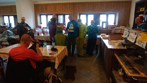 小屋が見えると、迷わず駆け込んだ。ストーブがあり、毛布も用意されていた。外はマイナス10度かもっと寒いか。まるで幻みたいだ。床で毛布に包まって寝ていると、他の男性選手がストーブの前のソファの特等席を譲ってくれた。ふかふかのソファに身体を沈め、大きなクッションを枕にストーブの柔らかくて温かい空気に包まれる。これがレース中なの?もう、夢心地。ぬくぬく。なんて幸せなんだろう・・・ほとんど勝手にまぶたが閉じて、45分ほど睡眠を取った。この小屋は食べ物も美味しくて、トマトペンネにはソースとチーズをたっぷり載せてくれた。この小屋でおしりに根が生えている人が沢山いた。だって、外では風がピューピューと音を立てている。