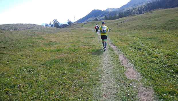 高く遠くまで人が点々と続いて見える光景は、樹林帯の多い日本のレースでは少ない。わたしは他のヨーロッパレースで経験しているので、そんな光景も心が折れるようなメンタルのダメージがないのが幸い。