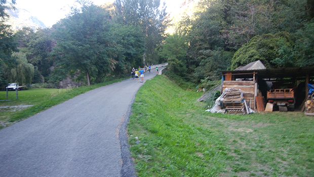 走れる区間では、ボーイッシュなイタリア人の若い女の子とほとんどの時間を前後しながら走った。髪の下半分をアディダスのトレフォイルのような刈り上げをしていた。何度かコミュニケーションを試みたが、英語がまったく話せないようで、Where do you live?(どこに住んでいるの)さえ通じなかった。なんなら、クールマイヨール? と聞いても首をかしげていたし、名前さえ3回聞いたけど聞き取れなかった。(なぜイタリア語ってこんなに通じないのー!)たった一度だけ笑ってくれたことがあったが、それが何だったのか忘れてしまった。にっこり笑うと矯正着具がキラリと光っていた。あとからわかったことだが、彼女はなんとトルデジアンでは数少ない20代だった。