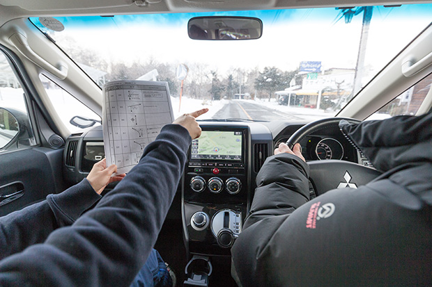 面白そうだ! ということで、Akimama取材班もチャレンジ。しかし、スタートして間もなく右折する場所を直進する失態。さらにその先の左折するポイントでも直進……。「あれ?」と、ルートの間違いに気付くのにもひと苦労。これは想像していた以上に集中力を要するし、難しいぞ。制限速度域の雪道走行でコレなのだから、プロの方たちの実力って一体……。ハラハラドキドキの連続で、無事ゴールに到着したのだった。