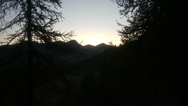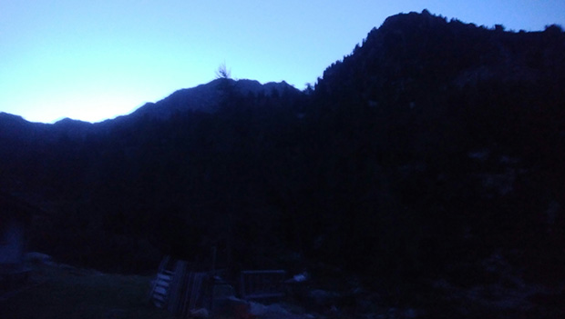 こんどは難しいお題を考え込みすぎてわたしも眠くなってしまった。よくわからない難解なしりとりをヨーロッパアルプスの麓で小一時間繰り広げた。あたりが薄暗くなり、5日間晴れ続けた空から、ついにぱらぱらと雨粒が落ちてきた。2人とも、しりとりどころではなくなって、5日目のライフベース、VALOURNENCHE(239.0km)に飛び込んだ。