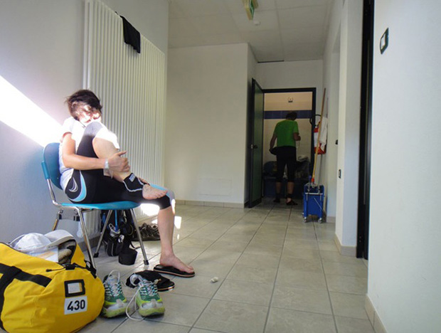 DONNASに着くと、とりあえず汗だくの身体と途中に買い食いしたジェラートでベタベタになった手を洗い流したかった。トルデジアンのライフベースとなっている建物の多くはスポーツセンターのような場所で、食事や睡眠のほか、シャワーを浴びることもできる。1週間に及ぶレースの途中で汗を流して着替えることができるのは有難い。3日目を迎え、さすがに身体から異臭を放っていた。