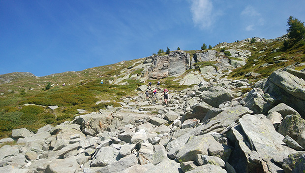 想定タイムの半分ほどで次の小屋に着いた。夜が明けていたことすら気が付かなかった。天に届くような石が折り重なるトレイルで、機嫌悪そうに歩く金髪の若い女性選手に道を譲ってもらった時に「She is crazy!」と捨てゼリフのように言われた声すらもすぐに谷底に消えていった。後ろにぴったりついている男性がいたことにも気づかなかった。稜線に出て小屋が見えたところで声をかけられて初めて気付いた。