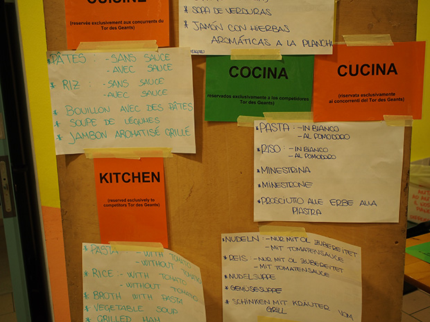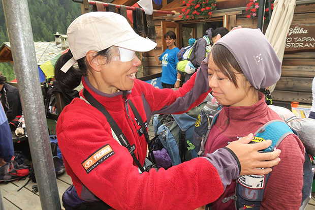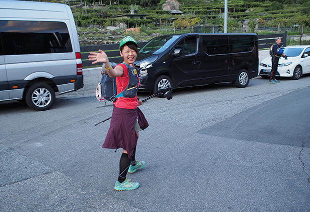 仲間達はもう先に行ってしまって今はひとりだと説明する英語が出てこなかった。頭を撫でられて、黙って荷物の整理を手伝ってくれた。パスタや飲み物も持ってきてくれた。エイドの隅の床でパスタを食べるわたしの話し相手になってくれた。サラという名前の彼女はクールマイヨールに住んでいるらしく、毎年スタッフをしているそうだ。