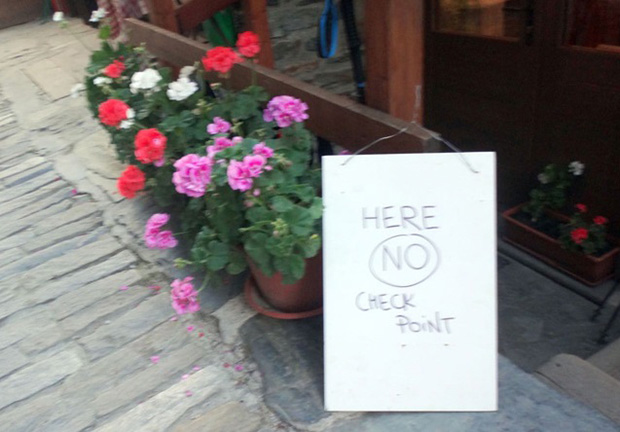 入口にここはエイドではありません、という但し書きがある。中を覗くと、ペンション風の素敵な宿だった。