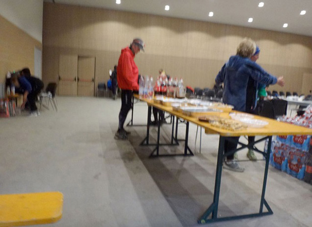 ライフベースは閑散としていた。何十台もの机と椅子が並んでいる。だけど空席率は80%くらいだ。すでにエイドINの関門を過ぎていて、入ってくる選手が拍手で迎えられ、当人達はうなだれている。声を上げて泣く選手もいた。