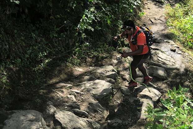街から稜線に上がるまで、大きな石の階段のようなトレイルが続いた