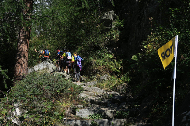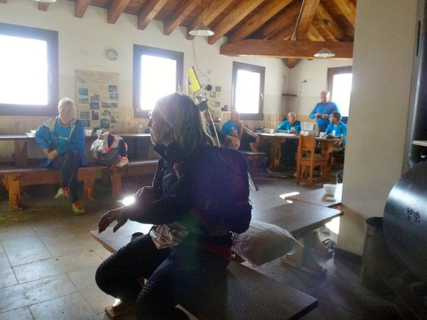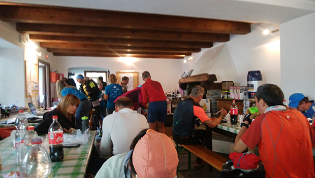 次の関門、Oyaceには13:30に到着しなければならず、わたし達は関門に追い立てられていた。ビバッコ小屋は数名ほどしか入ることのできない避難小屋で、食事スペースも6人も入れば満員のような場所だ。少し補給をしたらすぐに出るつもりだった。