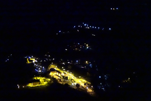 遠ざかる街の灯り。今日もまた、山に向かう。