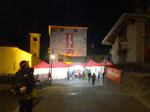 本来ならば走れる下りをかなり歩き通して、夜の教会サンレミボス(Saint-Rhemy en-Bosses/308.6km)に着いたのは3:32だった。下り7kmに寝ぼけながら約3時間半かけたらしい。え? 1kmを30分? それってほぼ止まってるようなもんだ。逆に難しい。