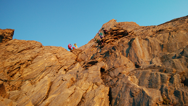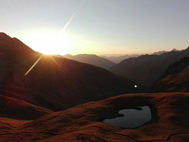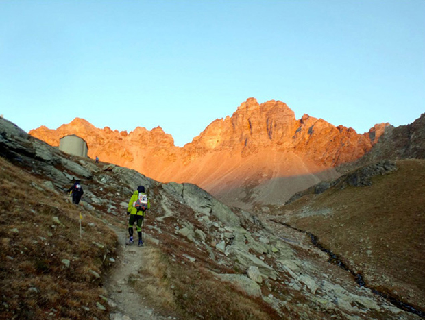 そこからは次のエイドまで登りが2つ、さらにその先から、その次のビバッコ小屋まではおおよそ登りが3つと聞いて、数えながら進んだ。凍えるような夜を越え、綺麗な朝焼けを迎え、ふたりで黙々と登り返しをこなした。