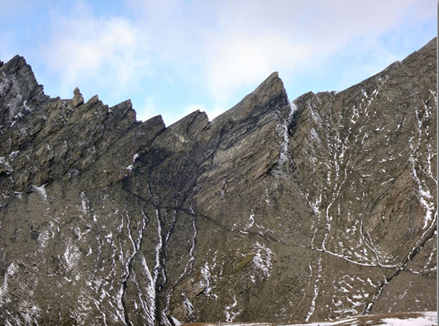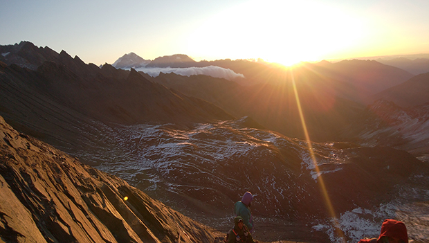 朝陽が山の斜面に当たるモルゲンロートという現象。どんな状況でも山はとことん美しい。