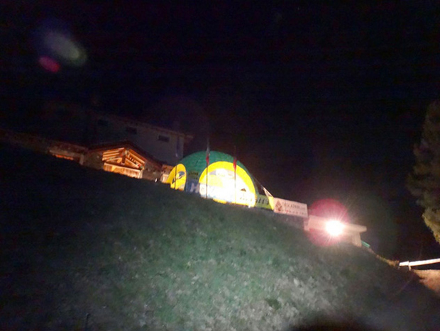 コースマーキングの旗を見失ってしまい、行ったり来たり。同じ場所を散々グルグルしたりして、数十分費やしたかもしれない。昔よりずっとコースマーキングが増えた、と言う人もいるが、日本のコースマーキングの多さに比べればずいぶん少なく、コースを見失いそうになることもあった。結局、ズンズン進む後続の選手に付いて行き、コースに復帰した。登りきった後は地図で見るとほんの、ほんの、ほんのわずかな下りで次の小屋に着くはずだったが、真っ暗なコース上にいくつもの大きな建物が現れては、その度に2人してエイドだと勘違いながら夜の山を彷徨うように走り続けた。