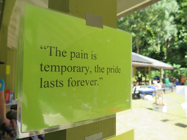 走っているとき、コース上にこの言葉のサインが何度もでてきた。そしてこの言葉を何度も見ながら、ずっと「こいつ何言ってんのかな? わたしの英語の読解能力が低いのかな?」と思っていた。なぜなら「誇りとかようわからんものよりも今のこの死にそうな膝の痛みの方がぜんぜん問題でしょうよ」と、本気で思っていたからだ。けど、今ならわかる。足が痛い、気分が悪い、胃が痛い、そんなものはレース中に起こる一時的な出来事でしかない。いつかは消え、忘れ去るものだ。けれど、HURTを走ったという経験と誇りは、ずっと人生に根付いていく。