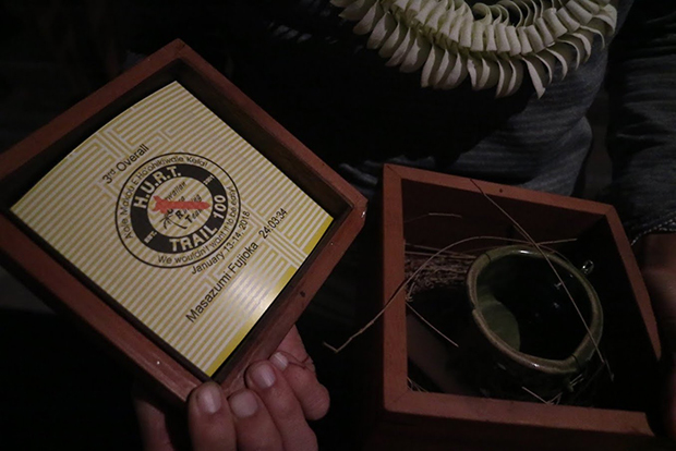 初めての100マイルで7位に入賞したヒロキくんは謎の犬が印刷されたまな板のようなものをもらっていた。これはちょっといまだになんで犬なのかは理解できていない。