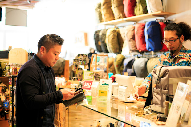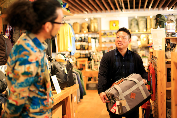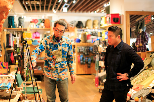 「アウトドアショップにはけっこう行きますよ。いろんな道具を見るの好きなんですよ」。という心平さんは、エイアンドエフに来るのは初めてとのこと。