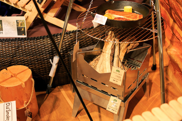 「今日は本気で買いますよ」と、まず、最初に向かったのは、焚き火台とダッチオーヴンを吊るすことができるトライポッドのコーナー。