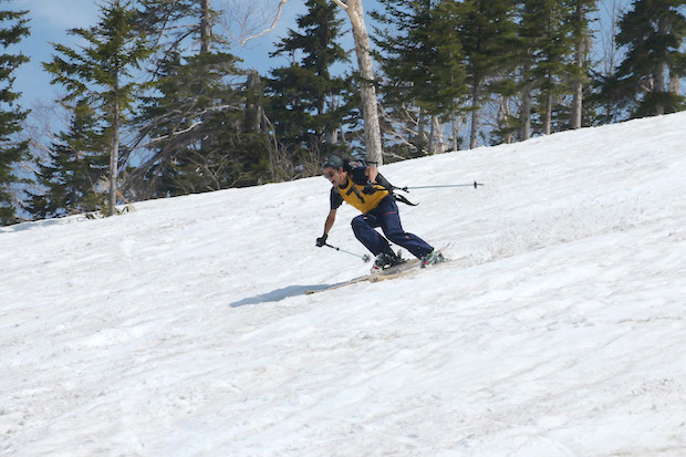 最近は雪上を駆け上がったり、駆け下りたりする、ヴァーティカル・レースもありますが、このアドベンチャー・レースは十勝岳連峰の一角、三段山を舞台に雪山を登って下るタイム・トライアル方式で、登り・滑走の道具はなにを使ってもOK(もちろんモービルとかは自力じゃないのはダメです)という、これまでにみたことのないルール。