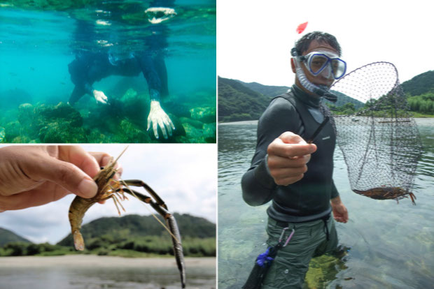 テナガエビは多摩川でも獲れたりしますが、仁淀川のやつは美味い! そして、潜って見つけて網ですくうという、爽快で血沸き肉躍る獲り方ができるのも、澄んだ流れの仁淀川ならでは。柄の短い玉網と水中メガネは必携ですが、入漁料はいりません。自由だ!