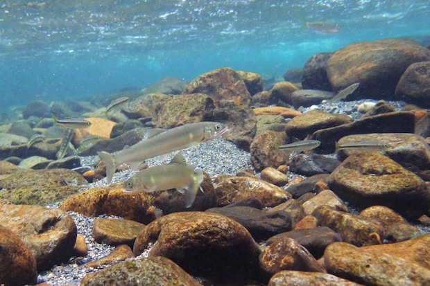 「川魚は警戒心が強いから近づけない」と思い込んでいるあなた、仁淀川で認識を新たにしましょう。川に入れば魚の仲間入り。アユやアマゴがすぐそばで泳ぐ姿に感動!