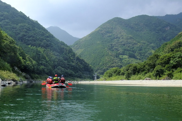 ラフティングツアーはスノーピークおち仁淀川で開催。仁淀川の中流域で最も景観にすぐれる区間を下ります。