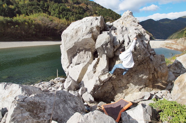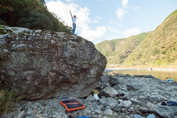 ほどなくして上田さんは、仁淀川をカヌーで下りながらそそる岩を見つけては上陸、ボルダリングをする喜びを発見しました。