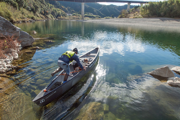 ボルダリングマットを乗せる必要があるため、上田さんはカナディアンカヌーをチョイスしています。