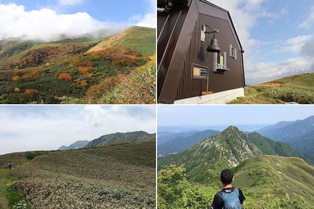 (左上)清水街道の白樺尾根。10月上旬は紅葉の季節で絶景が広がる。(右上)谷川岳の稜線上にある蓬ヒュッテ。(左下)七ツ小屋山近くから見た谷川岳稜線。(右下)「上越のマッターホルン」とも呼ばれる大源太山。