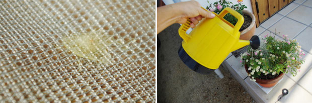 アクアシールを盛り気味に塗布。防水バックに入れた水は、植物の水やりに無駄なく利用しました。