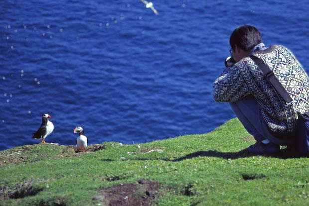 スコットランドのシェトランド諸島にあるフェア島は野鳥の楽園。禅スタイルでパフィン(ニシツノメドリ)にこれだけ接近できた。