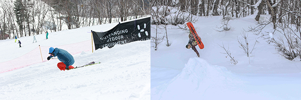 まず初日の10日(日)には、栂池高原スキー場の白樺ゲレンデ内に圧雪せずにパウダーを残した特設コースが出現。こちらではバンクドナチュラルフリーライディングの大会が開催されます。バンクに始まり、ナチュラルウォールや、ナチュラルクリフなどを配したコースで、ライン、スタイル、テクニックを駆使したタイムトライアルレース。しかもコースディレクションを手がけるのは、白馬小谷村在住のプロスノーボーダー渋谷謙。スキーヤー、スノーボーダー問わず足自慢はぜひエントリーを。
