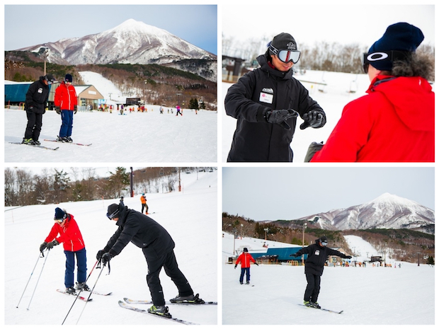 ゲレンデでの板のはき方まで、しっかりとその理由を教えてくれる。「子どもは身体で覚えるんですけど、大人は頭で覚えることからはじめる。スキーというものを理解すれば、滑りそのものも変わってきますから」と、わかりやすく説明してくれるスクールの佐藤徐庶さん。