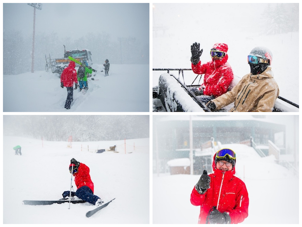豪雪となった2日目は、朝一番でCATに乗って、ゴンドラでもリフトでも行けないゲレンデへ。もちろん、ここからは滑ることができるわけもなく、戻ってきて、前日に教えてもらったことを再確認。