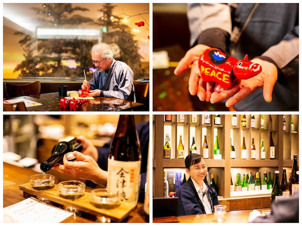 赤べこの絵付けの後には日本酒の飲み比べ。ふくよかな時間がそこには満たされていた。