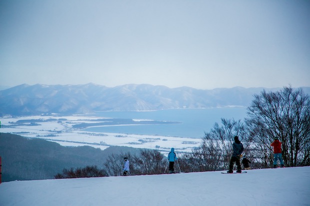 たっぷり2時間。中腰を続けたことで、足の疲れを感じて来たころ、佐藤さんがスノーエスカレーターに乗って降りてきましょうと促してくれた。スノーエスカレーターで登り、そこからゲレンデを見下ろす。わずか30メートルくらいの距離だろう。けれどそこから見下ろした景色は、それまでに見ていた景色とはまったく違っていた。左手前方には磐梯山がそびえている。ここから自然のなかを降りていくんだという快感。滑れるのかという怖さも確かに同居していたけれど、この自然と共にあるという感覚がスキーの魅力なのだろう。